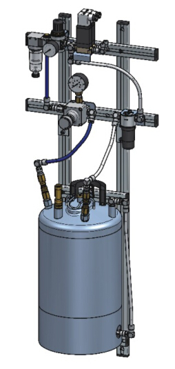 MDJ型微量潤滑系統配備一個(gè)10升的不銹鋼壓力容器,一個(gè)墻掛式安裝支架及一套閥門(mén)組合。其他控制模塊與TCJ標準型微量潤滑系統類(lèi)似,適用于除油漆、樹(shù)脂和粘合劑所外有的液體。